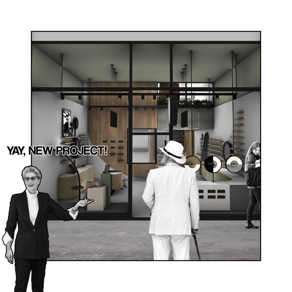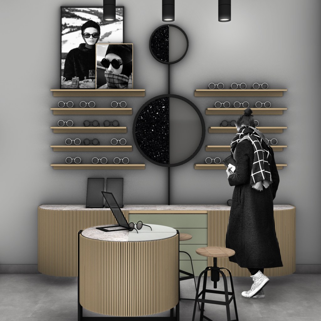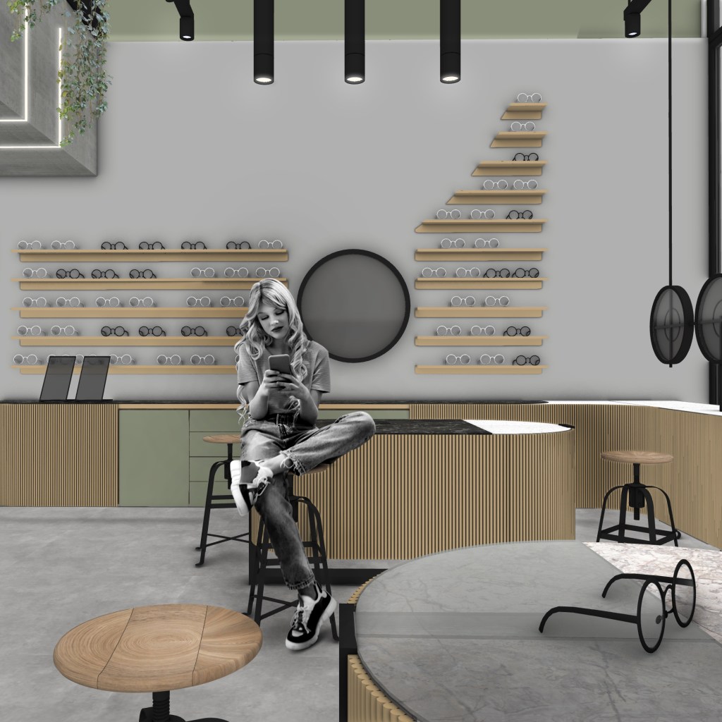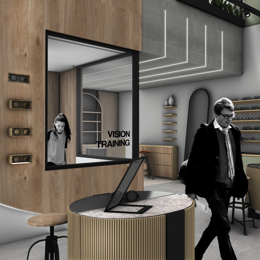 Σε αντίθεση με ένα συνηθισμένο κατάστημα οπτικών το Optotherapy προσφέρει υπηρεσίες και υπηρεσίες vision training οπότε η ιργάνωση του χώρου προσαρμόστηκε στην ανάδειξη αυτών με μέριμνα για διακριτικότητα και λειτουρική συνέχεια. Η υλικότητα του καταστήματος στηρίζεται στην αξιοποίηση της ξυλείας ως απτικού στοιχείου σε συνδυασμό με pattern διαφορετικών υφών με σκοπό την ανάδειξη των προιόντων. Σχεδιάστηκαν custom ράφια, φωτιστικά, και φυσικά η βιτρίνα η οποία υποστηρίζεται από πολλαπλά σενάρια φωτισμού.