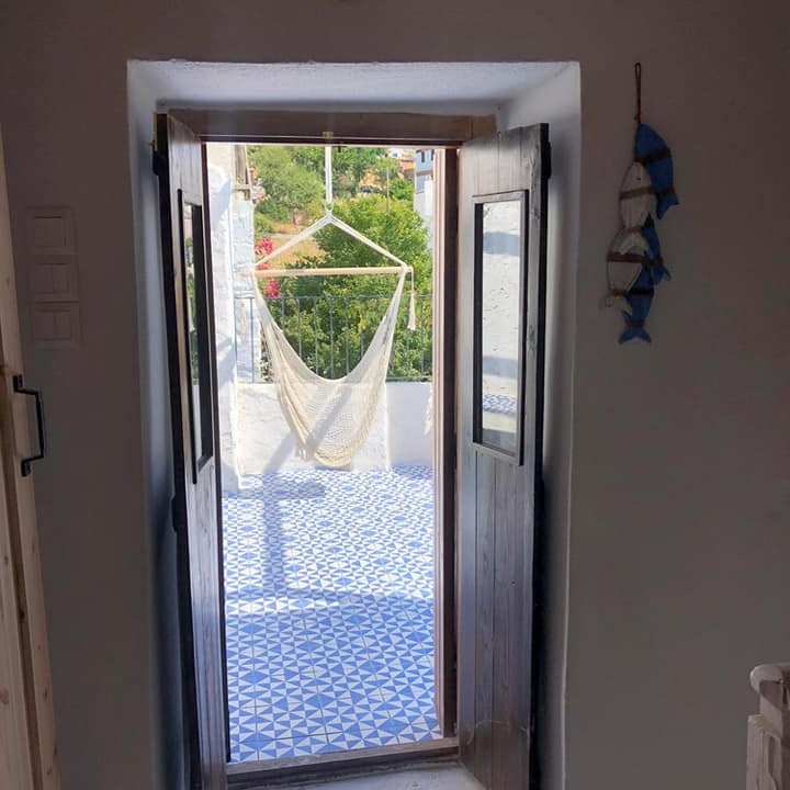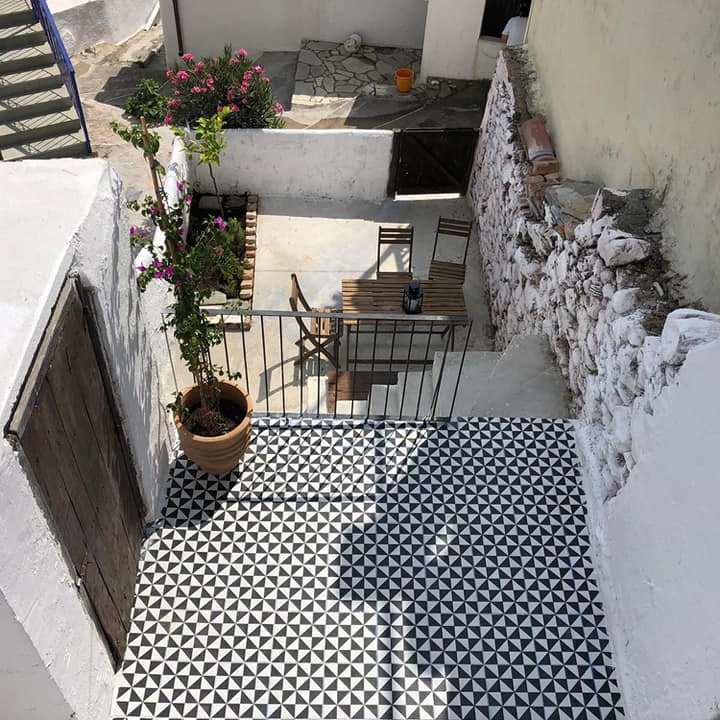 February 2020 we started working on a renovation – rehabilitation project of a folk house in the Chora of Skopelos. A month earlier we applied for the necessary permits but the major difficulty of the project was the fact that it was located in a thick network of narrow streets with zero vehicle access, the building was 80 years old and it was half dug in the rock that Skopelos is. As a matter of fact most of the construction work was performed using matterials that could be carried with simple tools and hands and therefore in the end result resembles a lot bottom up architecture. We were reminded of previous century building crews that travelled from area to area and built in coordination to the environment almost organically , a condition a lot different than nowadays construction that is based in a lego mentality of prefabrication and assembling. The construction finished after three months and the cost for the purchase of the house and its renovation barely touched the 100k euro mark. The house has 2 bedrooms, a living area directly connected to a veranda with an excellent view, a modern kitchen, a huge bathroom, a two level yard and construction details that carry handmarks and fingerprints. The photos that come with this article were shot by the owners and show the condition of the house one week after we delivered it to them. Furniture and decorations were decided by equal contributions from the office and the family of Anna and Mattheus.