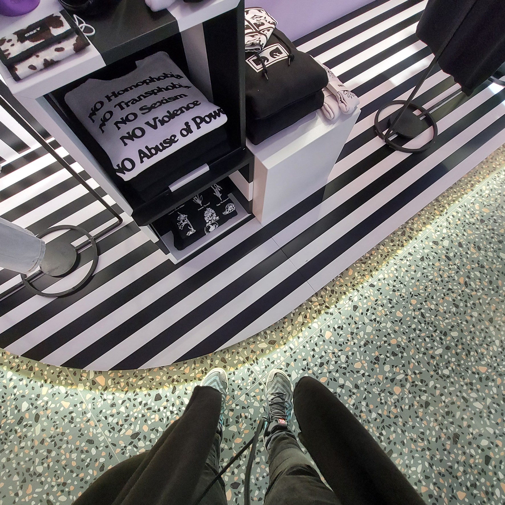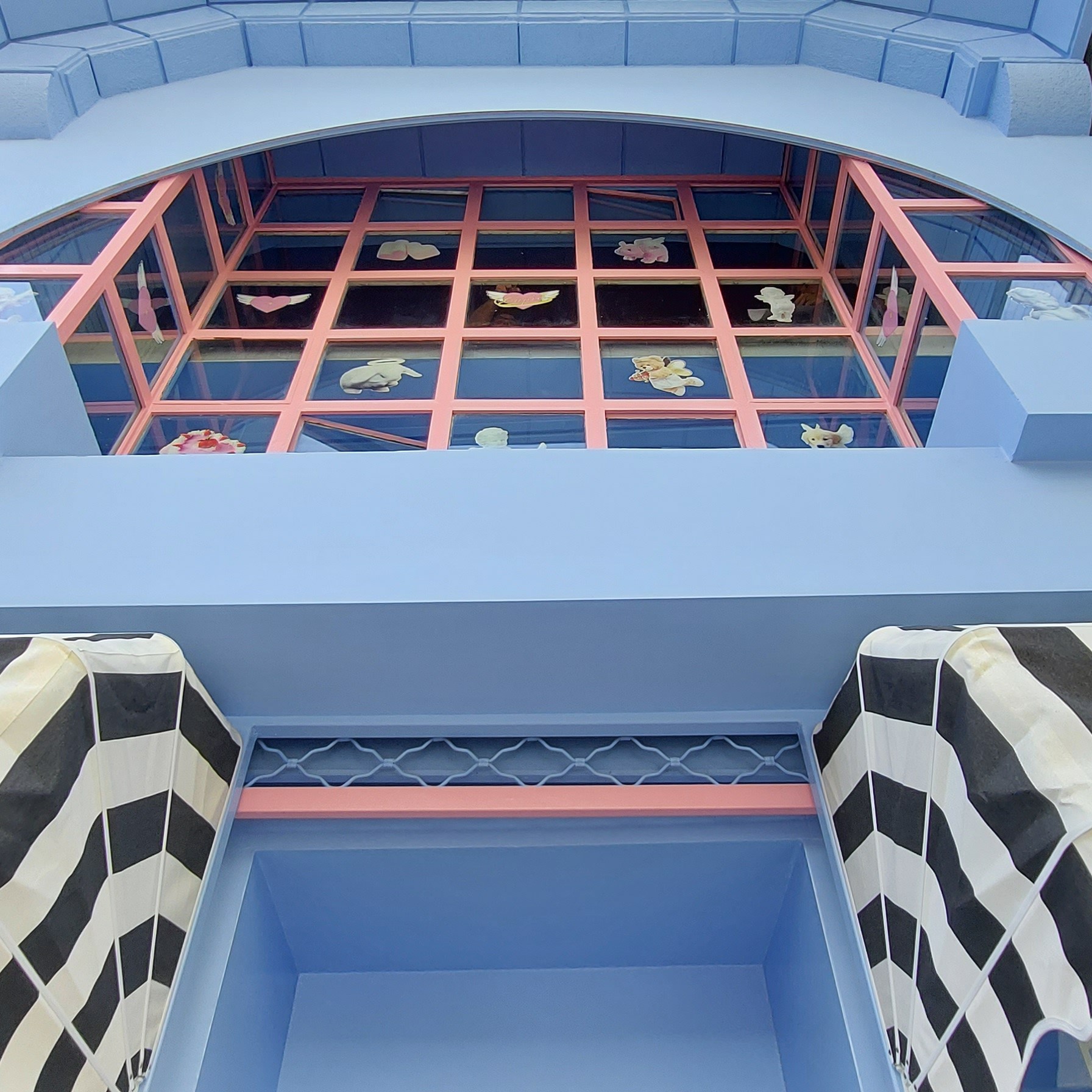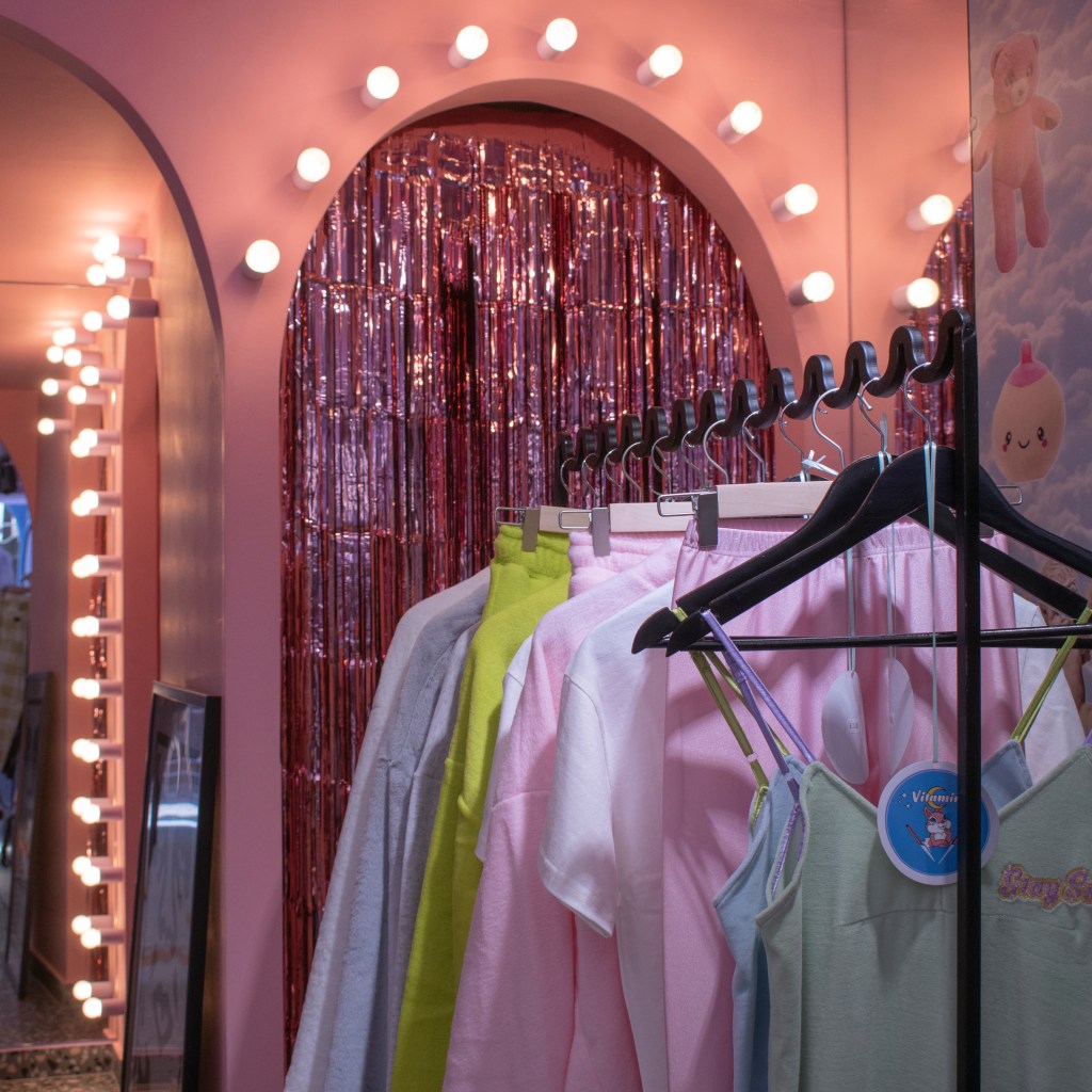 “Cupid” is a multi-use architectural project born in the era of a global pandemic, designed and crafted to accommodate clothing boutique, photography studio, party place, mini fashion show room, or anything the users of the space wish to. The chaotic nature of internet culture of memes, old school colorful anime, 90’s and 00’s aesthetic revival, post-modernism, glitches and errors, Gio Ponti’s ceiling patterns, new-old mosaic floors, and fluffy animals squished in toy machines have been huge design and curatorial influences, letting Cupid be many things at once but always instagrammable and multi functional as a physical and digital apparel store. Born in the era of quarantines, the need of stores to be multi functional and easily transformable started to rise rapidly, one-line shopping being a factor that had to be considered right from the start. This project, since it’s opening, therefore, is practically built anew every few days, from pieces of furniture designed and custom made to be stacked and re-ordered around, like platforms, boxes, Tetris blocks, background patterns, all in a color pallette showing prominently in both floors of the store, that allows this re-or ganisation to be possible and aesthetically pleasing without the presence of an architect- and thus making the user an architect.